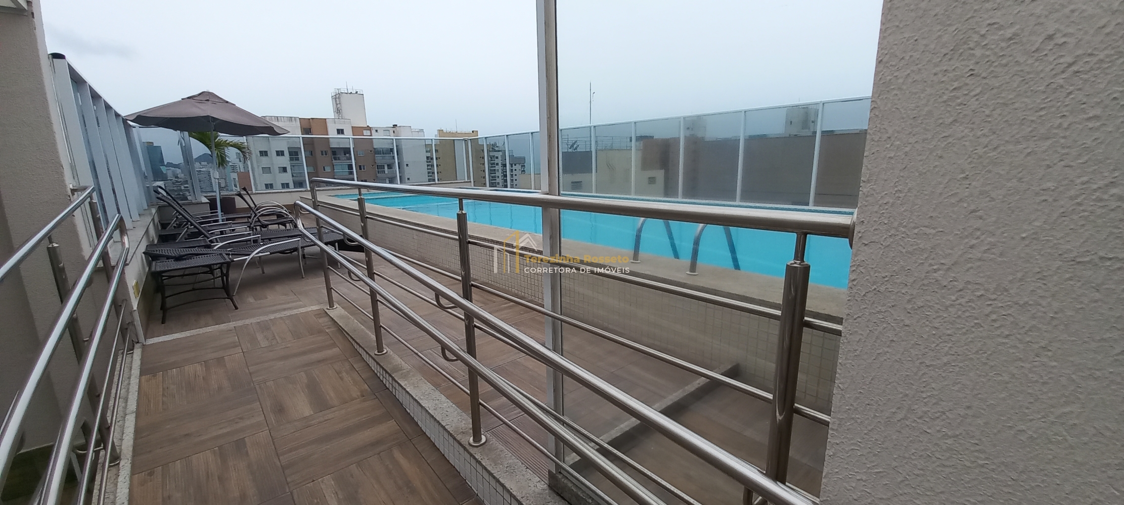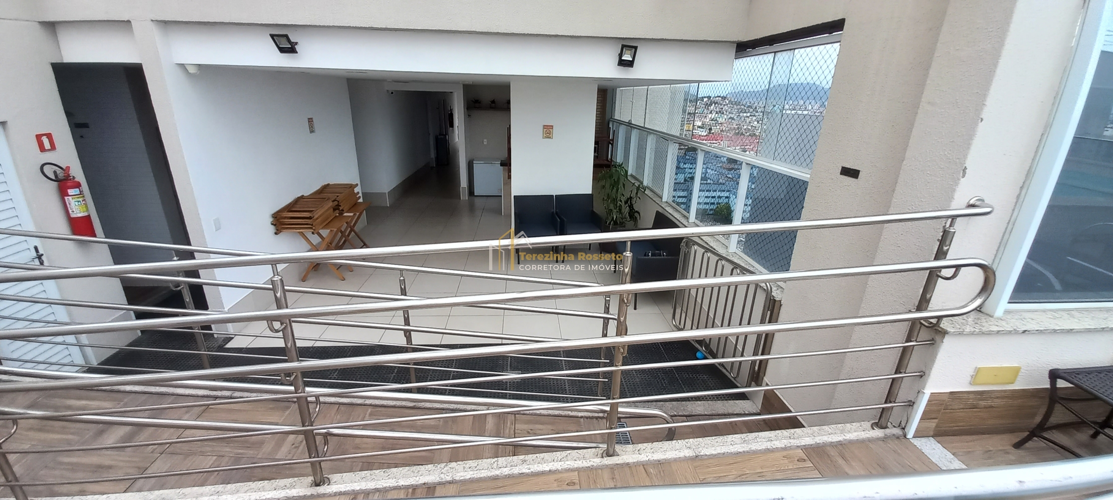 Varanda com fechamento em vidro e vista para o mar,