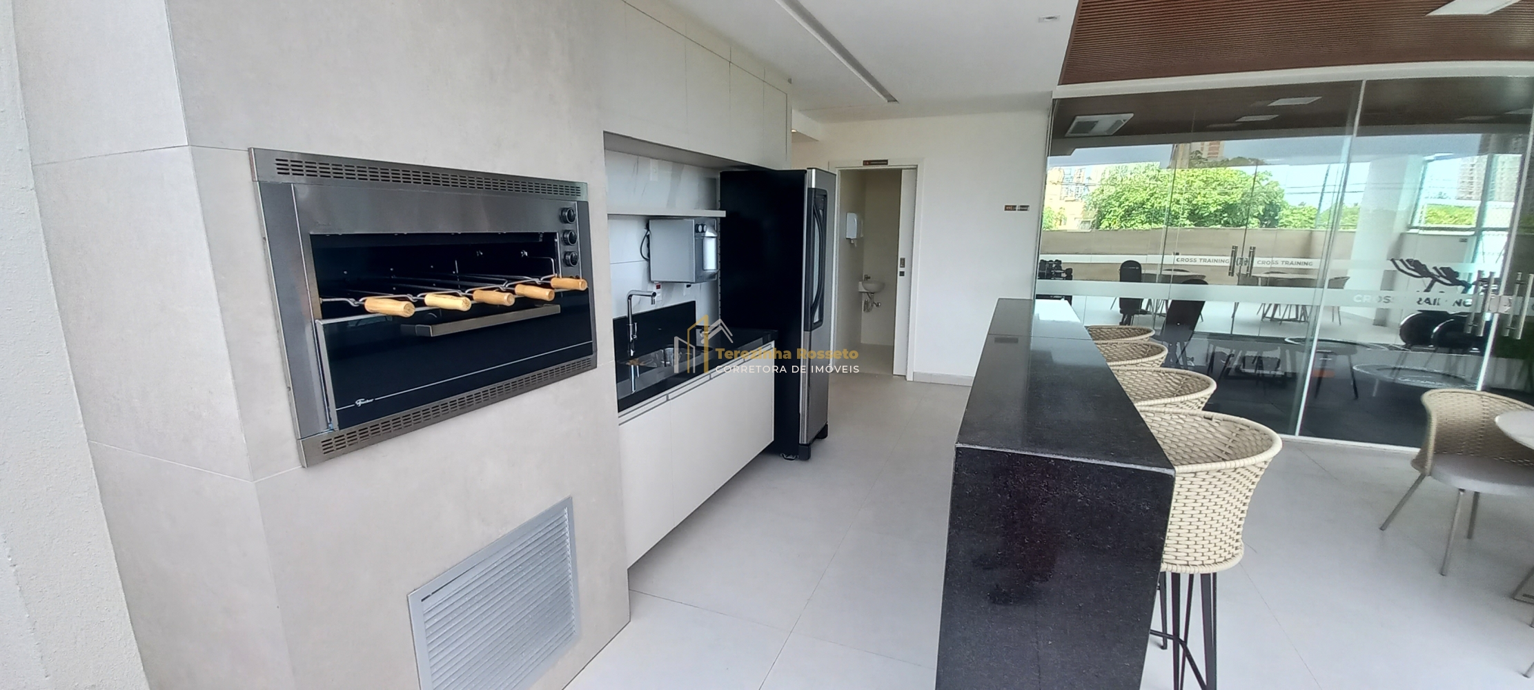 2 churrasqueira com área gourmet próximo a piscina.